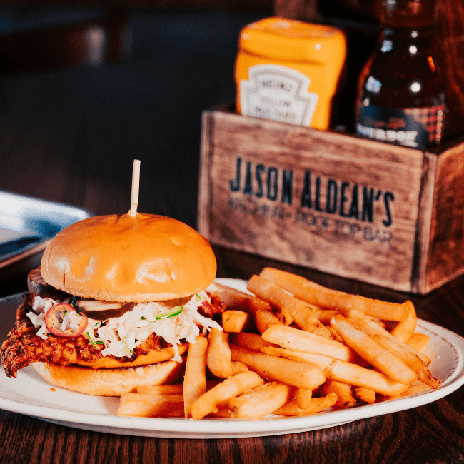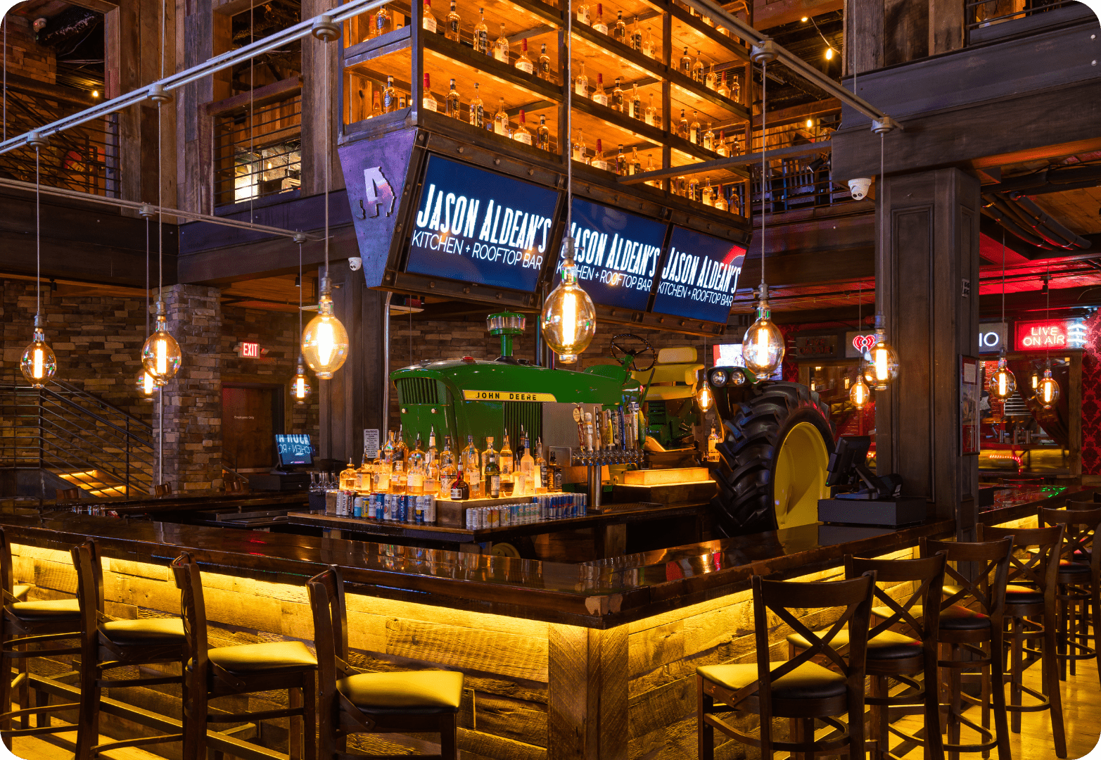 Jason Aldean’s Kitchen + Bar marks a significant milestone in Aldean’s career, reflecting his passion for both music and Southern hospitality. The venue celebrates his legacy with personal memorabilia, including a vintage John Deere tractor bar and record plaques. It’s a place where fans can enjoy his hit songs, delicious Southern-inspired dishes like Pot Roast, Jason’s Mac & Cheese, and an unforgettable atmosphere that pairs live performances with a high-energy nightlife experience.