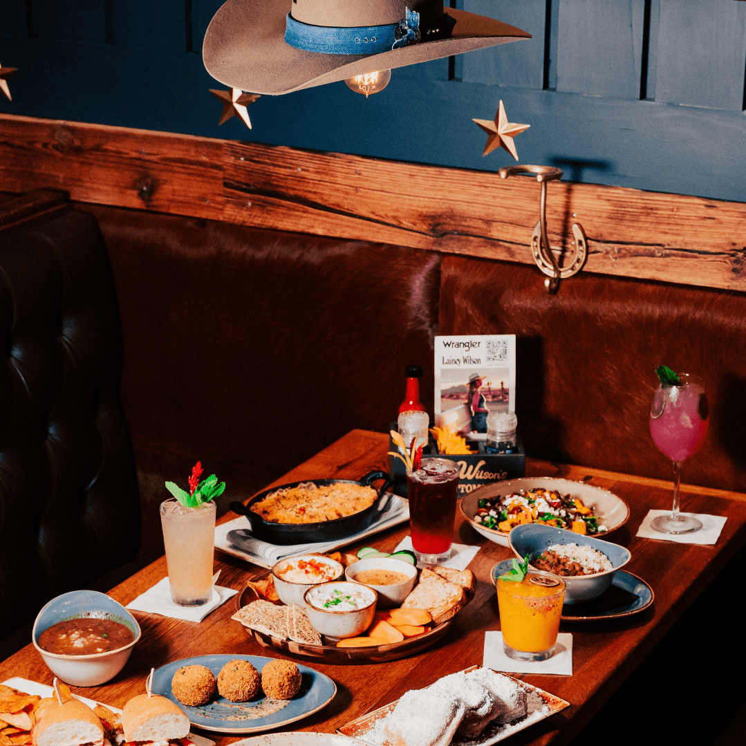 The menu at Bell Bottoms Up was crafted in collaboration with Lainey Wilson and Chef Tomasz Wosiak, blending bold Louisiana flavors with Nashville flair. Featuring some of Lainey’s favorites like Cajun pasta, shrimp boils, and fresh salads, the menu offers a mix of Southern comfort and lively shareable plates. Pair it with a signature cocktail, and you’ve got the perfect recipe for a night out.