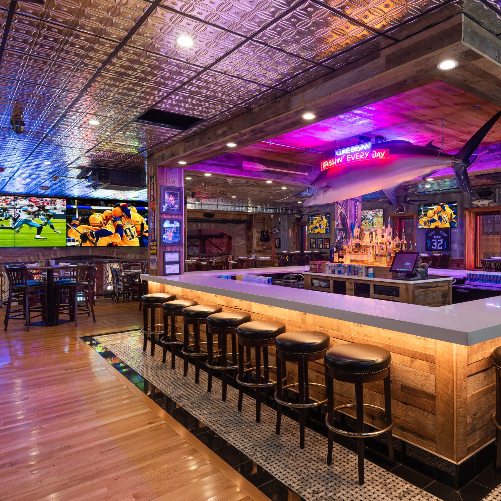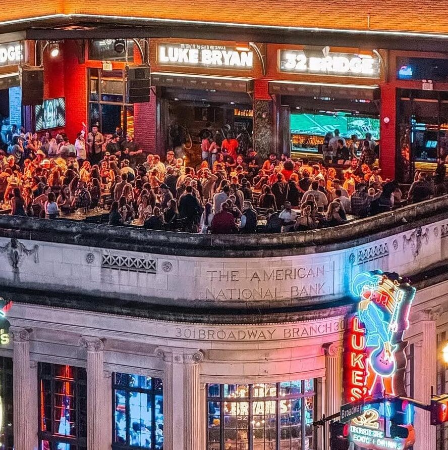 At Luke’s 32 Bridge, every floor offers a different vibe, with 2 stages featuring live performances from Nashville’s best talent. With 5 bars spread across the venue, you’ll always find the perfect spot to enjoy a drink, relax, or party with friends.